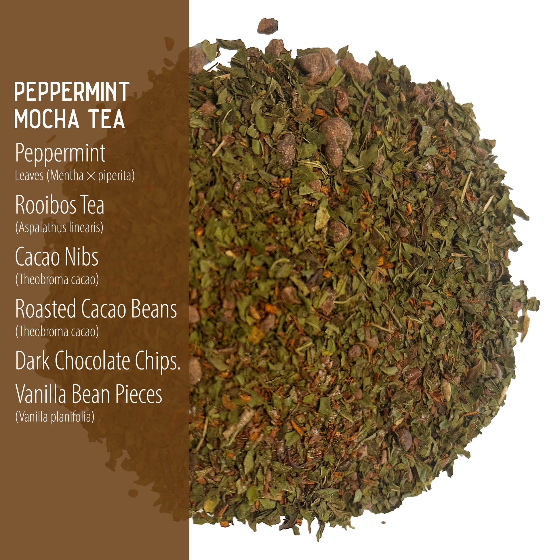 • Peppermint Mocha Tea – a refreshing minty blend with a soft hint of mocha and cocoa warmth.